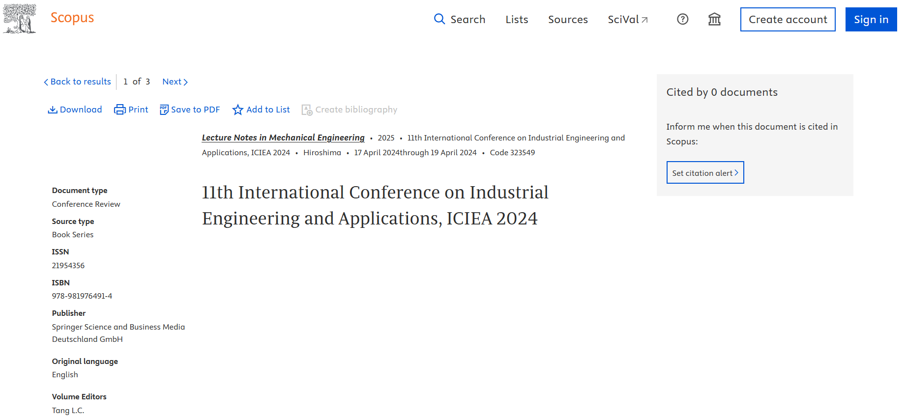 ICIEA 2024 conference proceedings has been indexed by EI Compendex and SCOPUS.